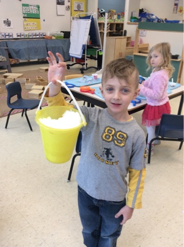 We have noticed how much our students LOVE eating the snow and ice from our yard! Tiring from saying, "don't eat the snow", we decided on a different approach. We did a science experiment. We gathered some of the cleanest snow.