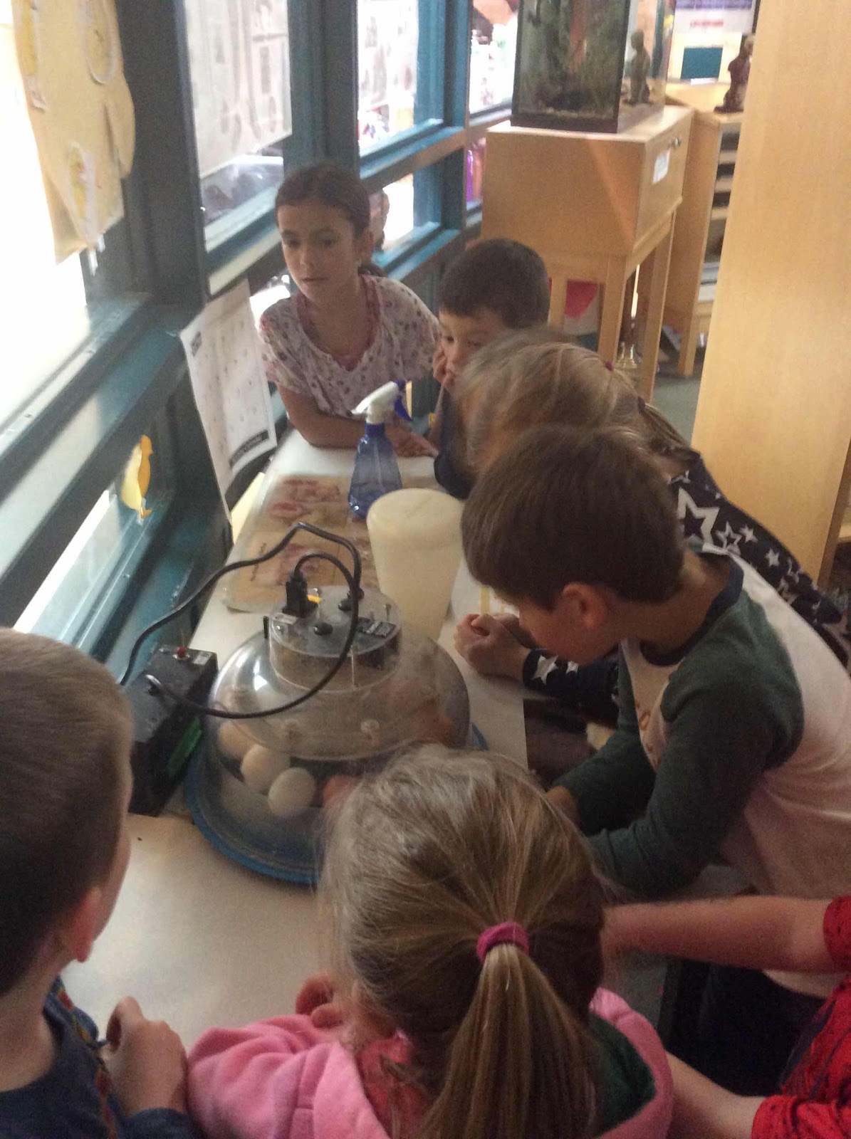Every day, we spray the eggs in order to maintain the humidity level.