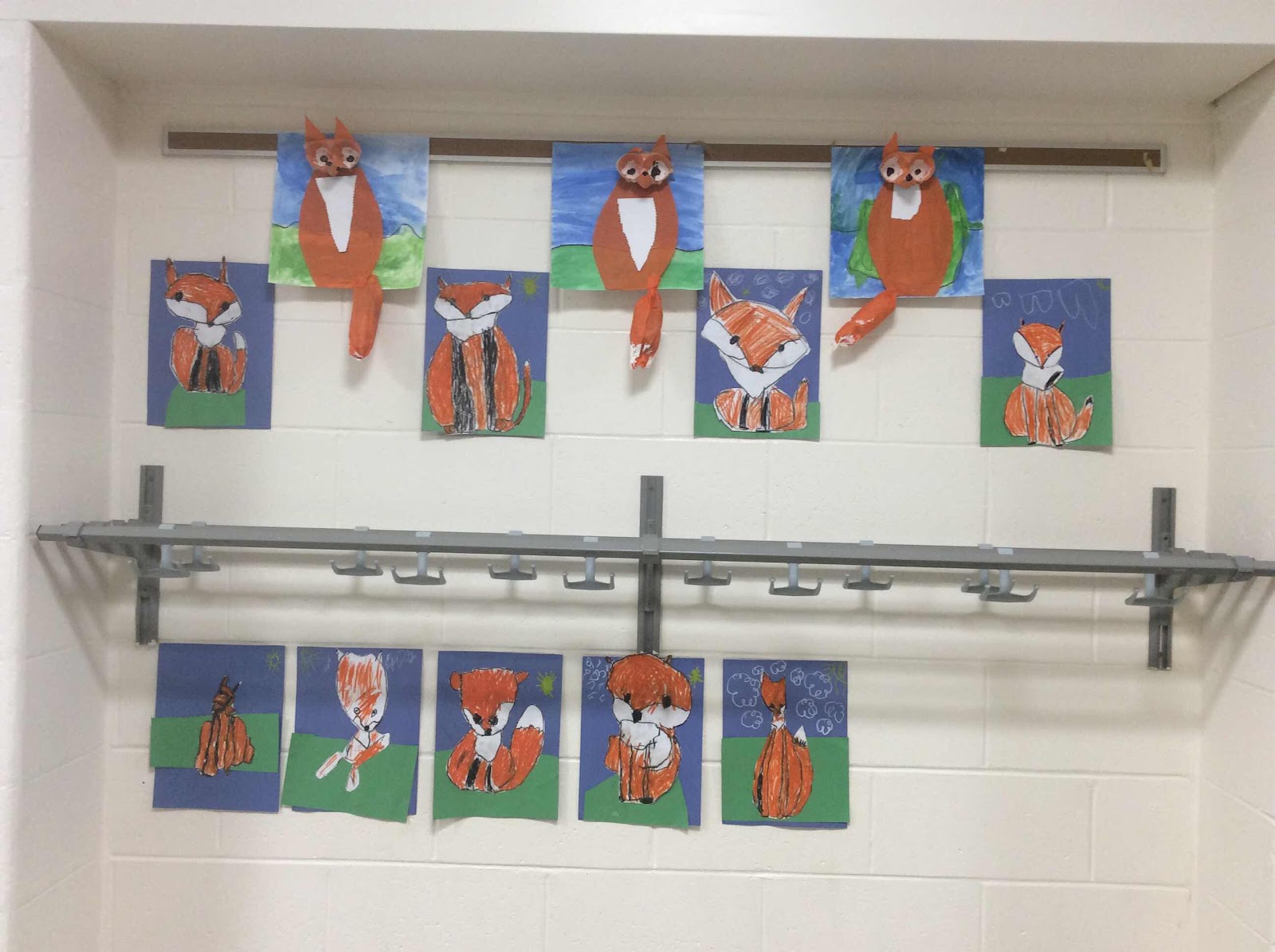 To celebrate the upcoming anniversary of our school, everyone is creating some fox artwork. Th3 fox is our school mascot. Each of our two classes created a different kind of fox by following various directions.