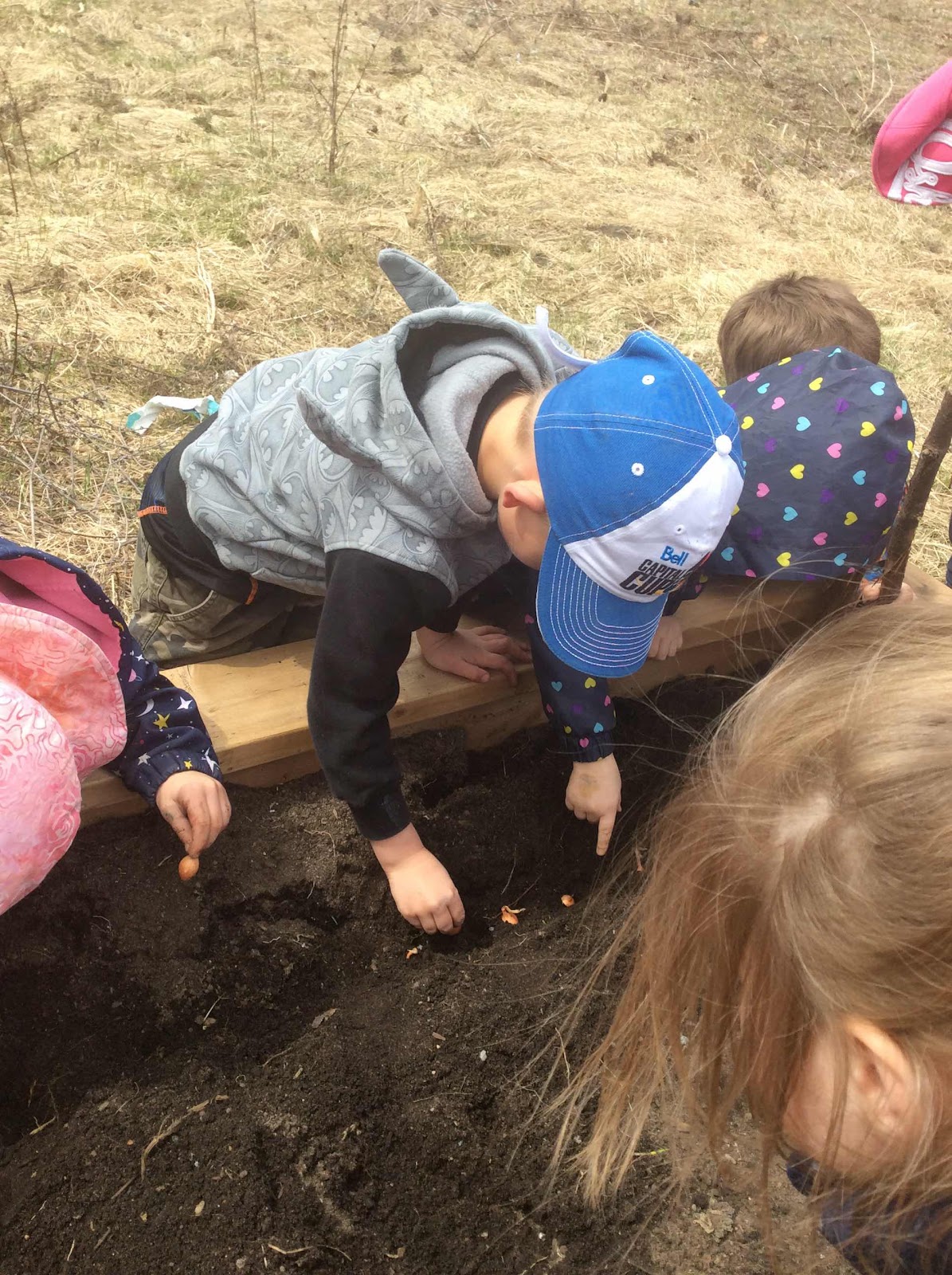 We decided that we’d like to plant pumpkins so that when we are in grade one and senior kindergarten, we’ll have pumpkins. It is too cold to plant outside, so we’ve planted some seeds in our classroom.